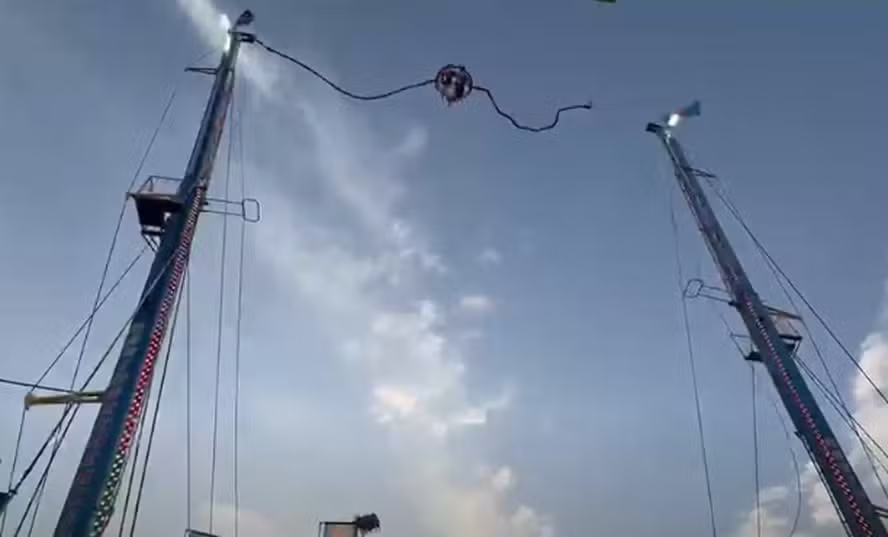 VÍDEO: Dois jovens ficam feridos após queda de 90 metros de altura por falha em brinquedo