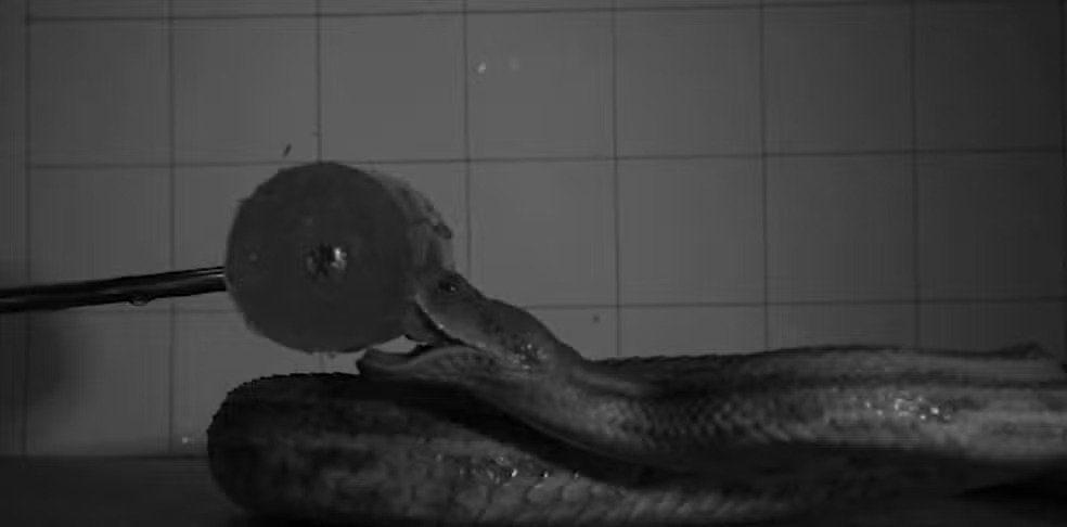 Os cientistas filmaram os ataques a mil quadros por segundo, usando um cilindro de gel balístico aquecido, criado para simular músculos e pele. As imagens em câmera superlenta mostraram que as víboras são as mais velozes e precisas. Em menos de 100 milissegundos, elas abrem as presas retráteis, ajustam o ângulo da mordida e injetam o veneno com extrema precisão.