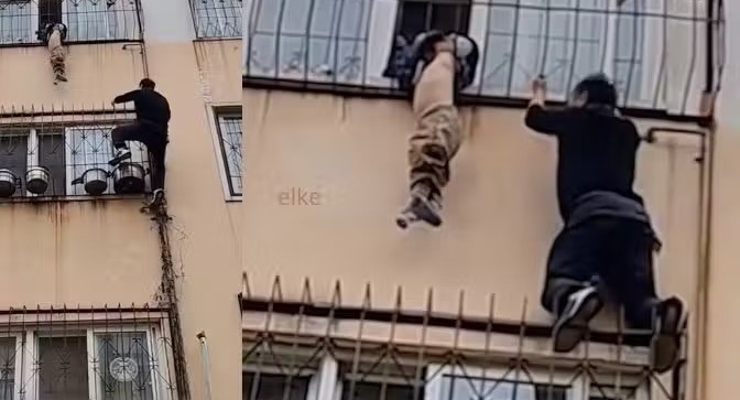 Sem equipamentos de segurança, ele decidiu escalar a fachada usando janelas e canos como apoio. Cui subiu três andares apenas com as mãos e os pés. Ao alcançar o ponto onde a criança estava presa, conseguiu empurrá-la para dentro.