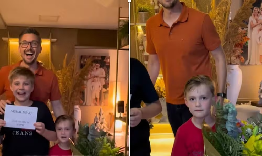 A reação mais marcante veio de seu filho caçula, Léo, de 6 anos. Ao ver a mãe com o novo visual, o menino não disfarçou a decepção e foi direto: “Achei bem mais feio”. Léo segurava um buquê de flores para presentear Paula, mas desanimou visivelmente com a transformação, colocando as flores sobre a mesa cabisbaixo.