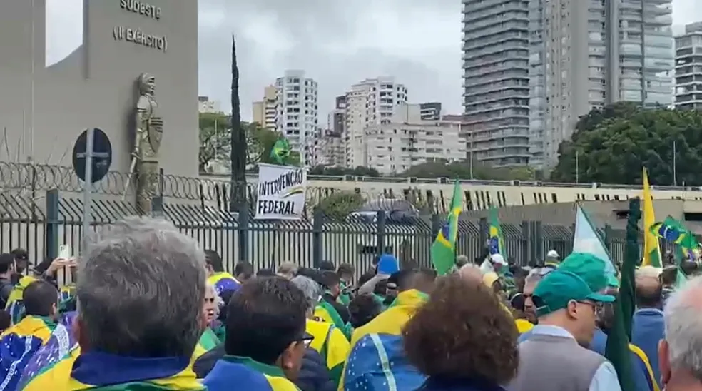 Nesta terça-feira (1°) apoiadores do presidente Jair Bolsonaro (PL) que não aceitam o resultado da eleição presidencial realizaram uma manifestação em frente ao Comando Militar do Sudeste, na região do Parque do Ibirapuera, Zona Sul de São Paulo.