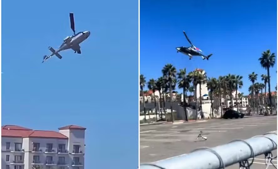 Um helicóptero caiu neste sábado (11) na cidade de Huntington Beach, na Califórnia (EUA), deixando cinco pessoas feridas. O acidente foi registrado por banhistas e mostrou o momento em que a aeronave perdeu o controle antes de colidir com palmeiras e uma escada próxima à areia.