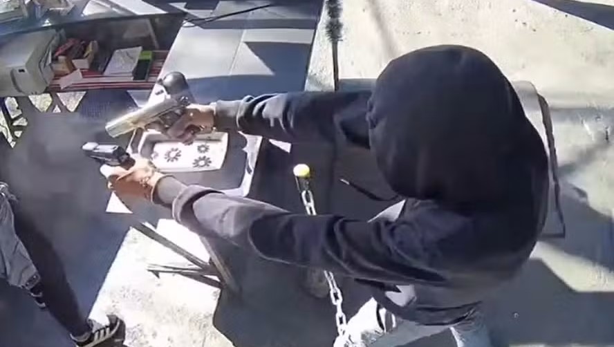 VÍDEO: Homem atira com duas pistolas contra ex-mulher em pastelaria