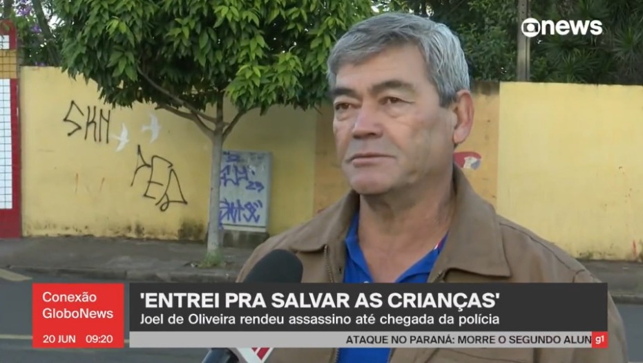 O prestador de serviços Joel de Oliveira, 62 anos, foi o responsável por conter o assassino de estudantes em escola no Paraná. Ele trabalhava ao lado do colégio quando ouviu os disparos. Ao chegar à escola, se identificou como policial e conteve o atirador.