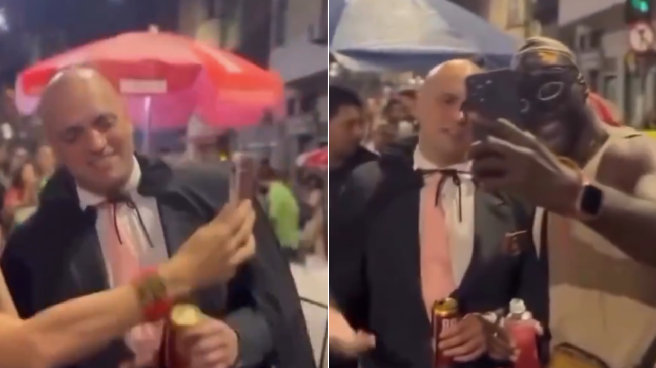 VÍDEO: Homem viraliza ao se fantasiar de Moraes em festa da condenação de Bolsonaro