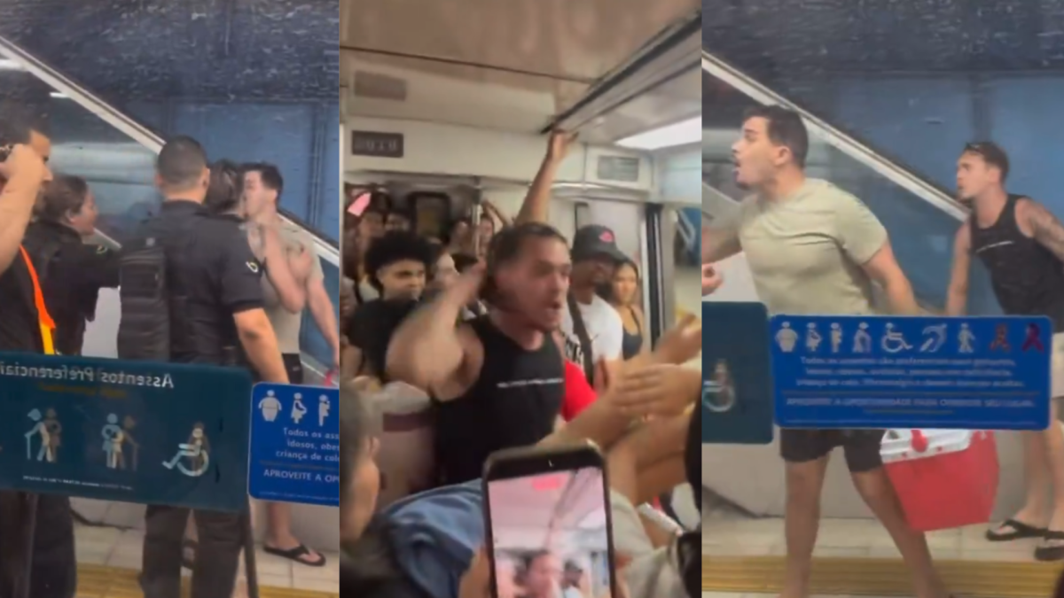 Dois homens foram flagrados xingando e ofendendo mulheres no vagão feminino do metrô do Rio de Janeiro. Após serem retirados pelos seguranças, eles continuaram a discussão na plataforma. O caso, registrado por passageiras e publicado nas redes sociais, viralizou nesta sexta-feira (10).