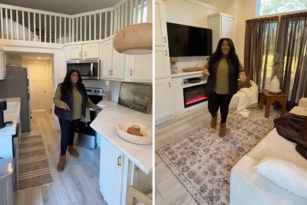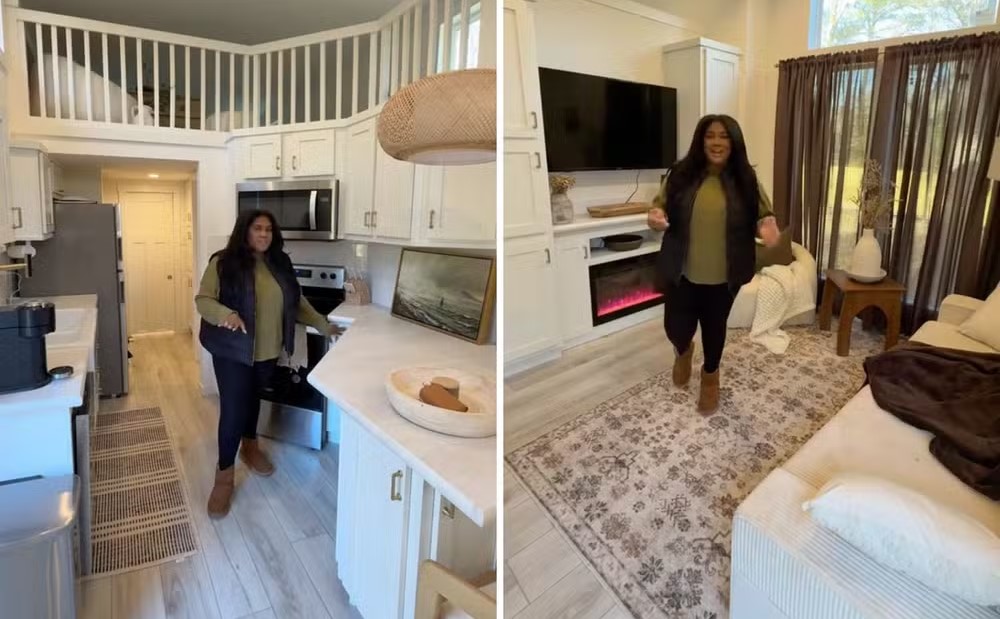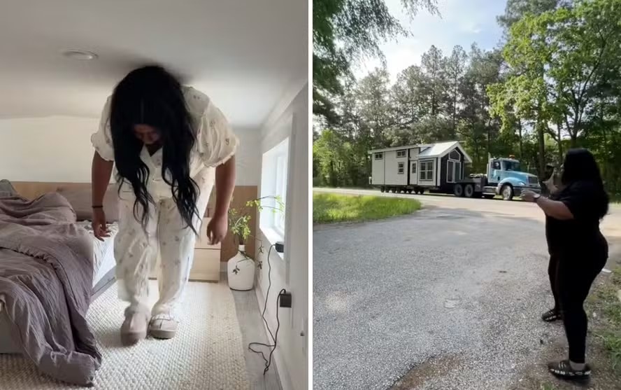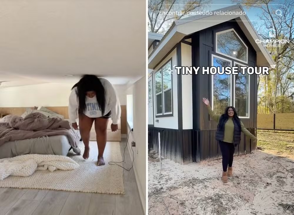 A criadora de conteúdo Bresha Jeanae, do Texas, viralizou ao compartilhar vídeos de sua rotina em uma tiny house de 37 m². A residência pré-fabricada foi adquirida por US$ 86 mil (cerca de R$ 460 mil) e chegou já montada em um caminhão, ficando instalada no terreno dos pais da jovem, onde ela vive desde 2024 com seus dois cães.
