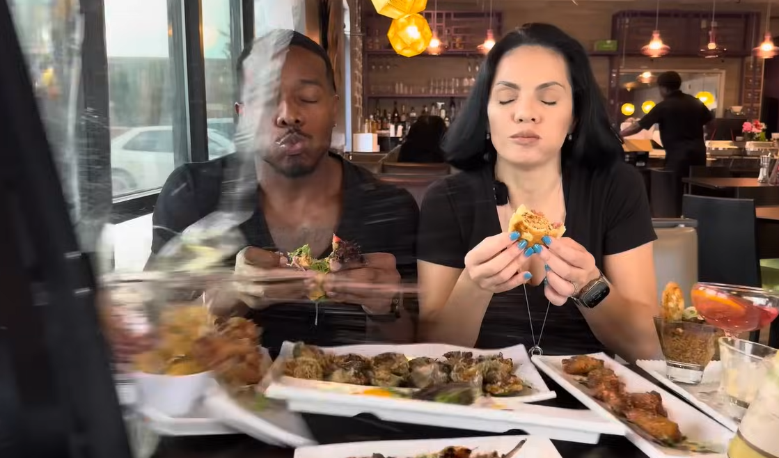 O casal de influenciadores Nina Unrated e Patrick Blackwood foram surpreendidos por um acidente enquanto gravava um vídeo gastronômico em um restaurante de Houston, Texas. Eles provavam comidas quando um carro SUV invadiu o local, colidindo contra uma parede de vidro.