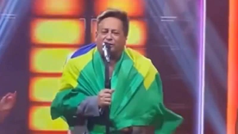 O sertanejo interrompeu a apresentação, se enrolou em uma bandeira do Brasil e fez um discurso em defesa do ex-capitão, agora condenado pelo STF a 27 anos e 3 meses de prisão.