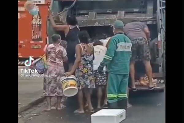 Circula nas redes sociais neste domingo (17), um vídeo que retrata o desespero da fome no Brasil. No registro, um grupo de nove pessoas revira a caçamba de um caminhão de lixo em busca de comida.