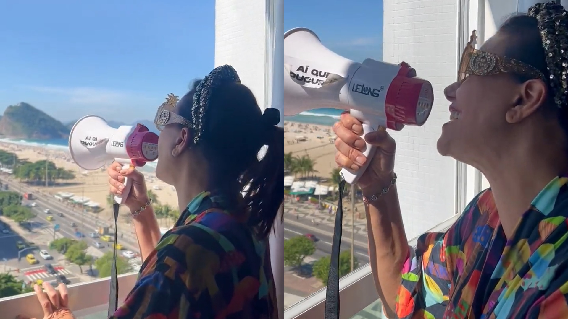 De sua janela com vista para a praia mais conhecida do Brasil, Narcisa perguntava com o megafone, em inglês, “onde está você, Lana Del Rey?”, antes de finalizar com o seu clássico bordão: “ai que loucura”. A própria influenciadora postou o vídeo nas redes sociais, onde escreveu um pedido para que a artista cantasse “uma música pros gays”. Veja: