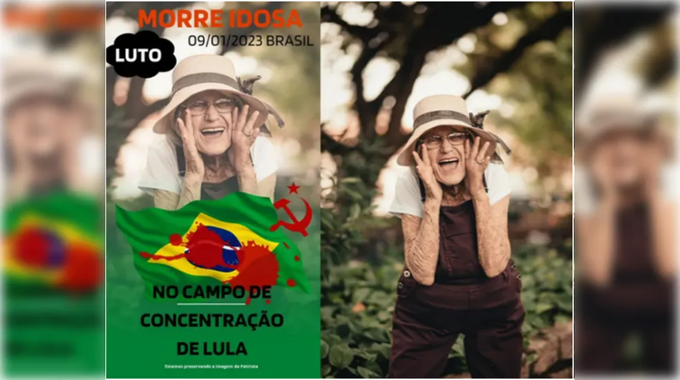 Bolsonaristas pegaram uma foto do banco de imagens gratuito do fotógrafo Edu Carvalho, de Campinas (SP), e têm usado a imagem de Deolinda Tempesta Ferracini, avó dele e de Juliana que morreu em novembro de 2022 devido a um AVC (Acidente Vascular Cerebral).