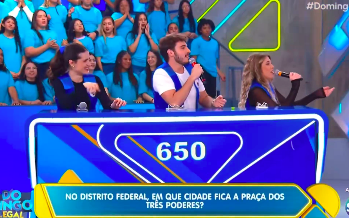 Durante o Passa e Repassa, do Domingo Legal, os filhos dos apresentadores Celso Portiolli e Gugu Liberato não souberam responder em que cidade fica a Praça dos Três Poderes, no Distrito Federal. A cena, que rapidamente viralizou nas redes sociais neste domingo (28).