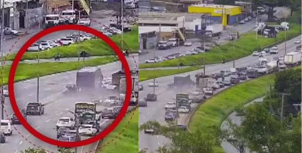 Vídeos divulgados nas redes sociais mostram o momento em que o ônibus, que trafegava pela faixa da esquerda no sentido Vitória, desce desgovernado e atinge outros veículos na pista.