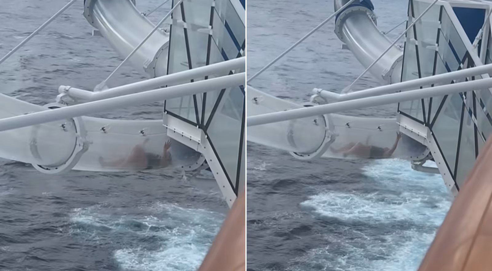 Um vídeo viral que circula nas redes sociais mostra uma passageira de cruzeiro presa em um toboágua transparente, localizado a 48 metros de altura sobre o oceano. Nas imagens a mulher aparece imóvel dentro do tubo Ocean Loops, uma atração popular da Norwegian Cruise Line (NCL), enquanto tenta se apoiar nas laterais do escorregador, mas não consegue continuar.