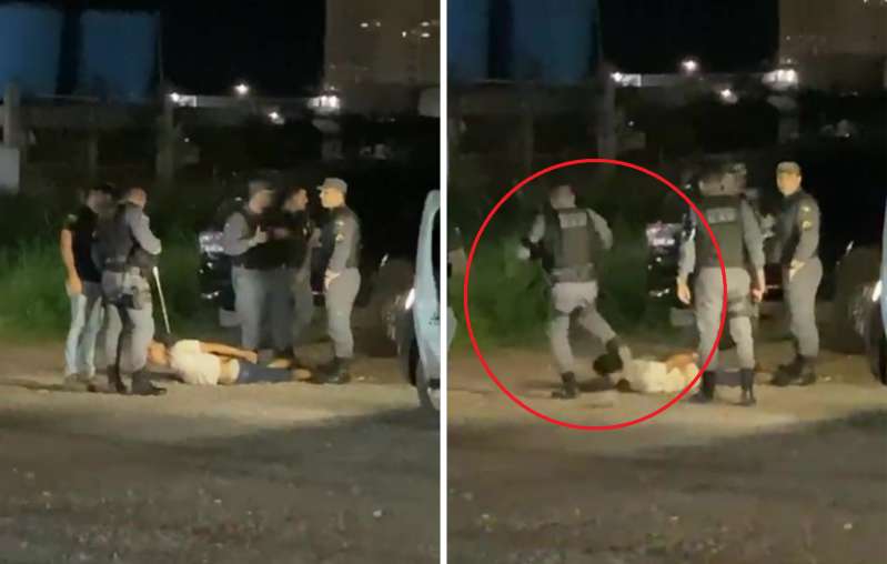 Um policial militar foi afastado de suas funções após um vídeo mostrar o momento em que ele agride um homem durante uma abordagem. Nas imagens, é possível ver o suspeito, de 27 anos, sendo chutado na cabeça enquanto estava algemado no chão, em Cuiabá. O vídeo começou a circular nas redes sociais no sábado (13).