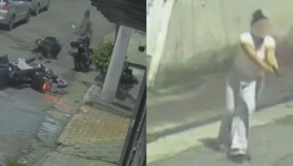 Na noite de quinta-feira (9), uma policial militar de folga reagiu a um assalto na Casa Verde, zona norte de São Paulo, e baleou dois criminosos que estavam em motocicletas. As imagens de câmeras de segurança mostram a policial caminhando pela rua Maria Medeiros, quando foi cercada pelos suspeitos.