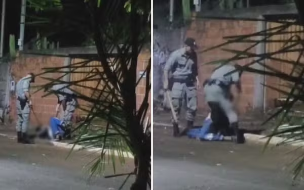 Dois policiais militares foram filmados agredindo um homem com cassetete na porta de uma casa em Panamá, sul de Goiás, no último sábado (30). O vídeo divulgado pela TV Anhanguera mostra os agentes aplicando vários golpes no homem enquanto ele está no chão.