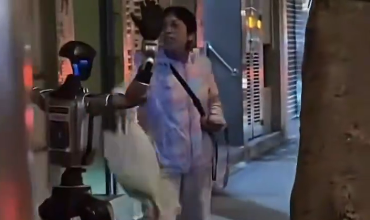 A woman panics, starts screaming, a crowd gathers, and police step in to escort the robot away to calm the situation.pic.twitter.com/eVq9UutrGh