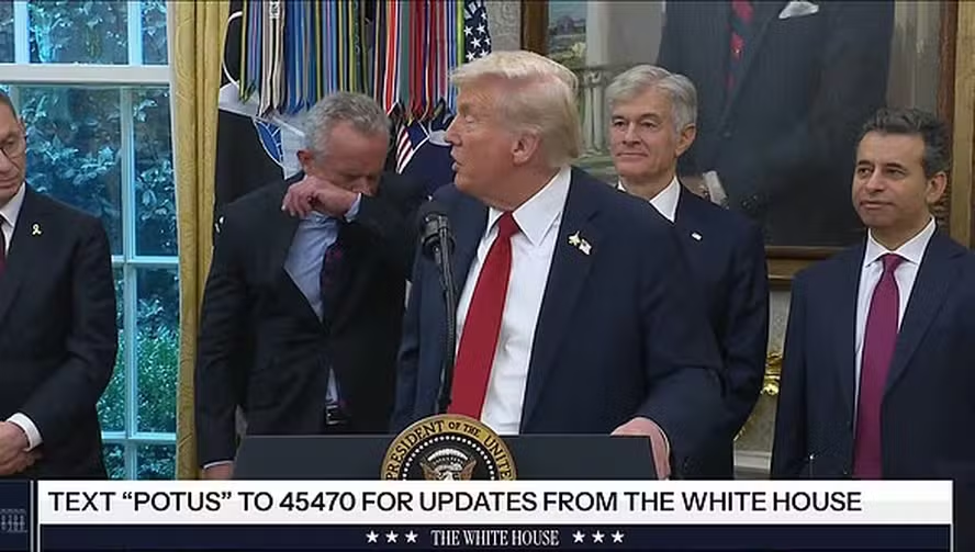 Trump percebeu o momento e fez uma brincadeira com Kennedy. Enquanto discursava sobre a redução do preço da insulina, o presidente interrompeu e disse: “Deus te abençoe, Bobby. Espero não ter pegado Covid ali”. A piada gerou risadas entre os presentes. Em tom irônico, Trump ainda se dirigiu ao diretor-executivo da Pfizer, Albert Bourla, que estava no local: “Você não tem Paxlovid? Me dê um Paxlovid imediatamente”.