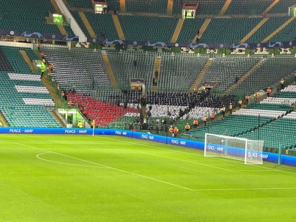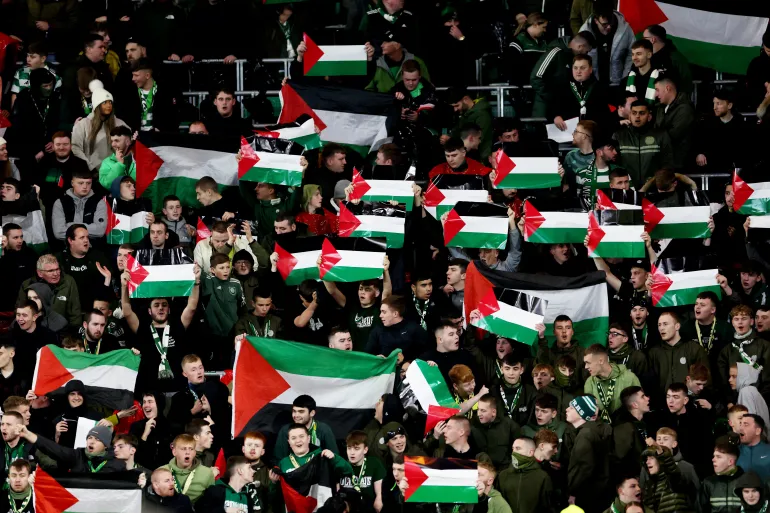 Os torcedores do clube escocês também fizeram um mosaico da bandeira palestina durante a mesma partida desta quarta: