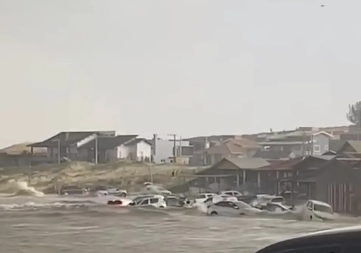 VÍDEO: Tsunami meteorológico engole carros em praia de SC