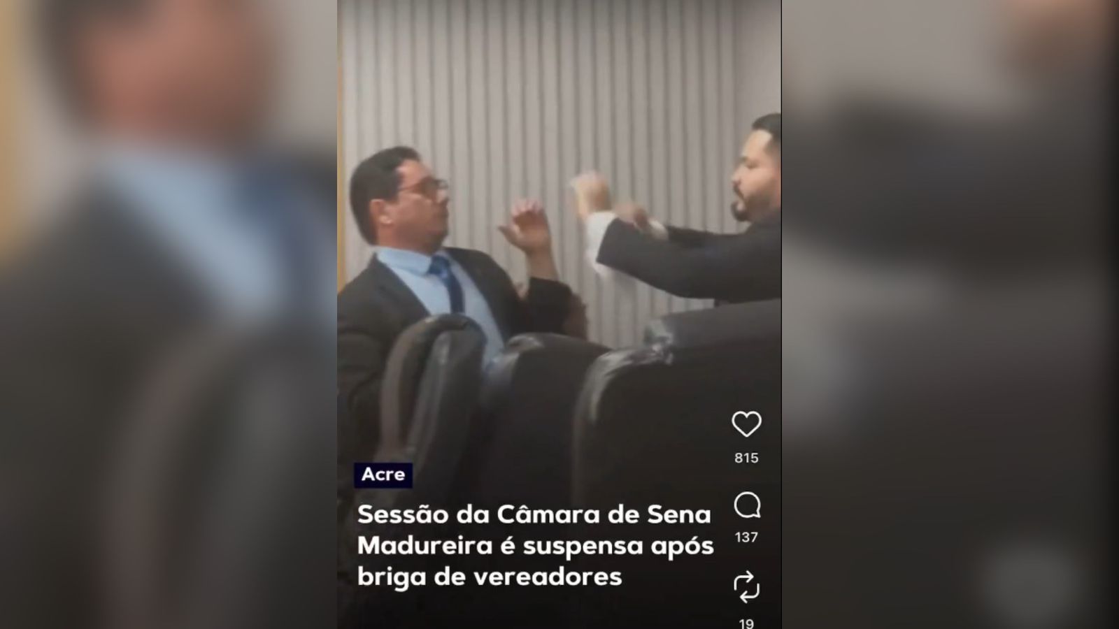 Uma sessão da Câmara Municipal de Sena Madureira, no Acre, foi suspensa nesta terça-feira (7) após uma briga entre vereadores durante os trabalhos. A confusão começou quando Maycon Moreira, ao discursar na tribuna, fez críticas pessoais ao colega Denis Araújo, afirmando que ele “não tinha talento” e mencionando suposta investigação sobre distribuição de medicamentos durante a pandemia de COVID-19.