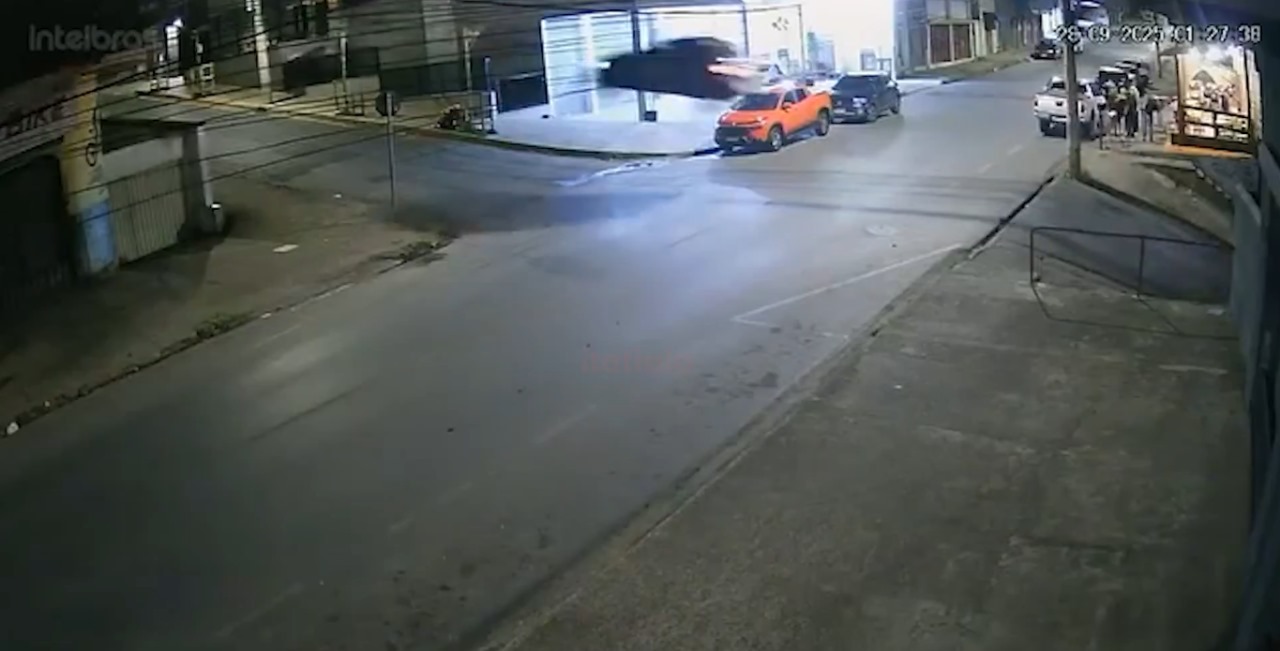 Uma perseguição policial chamou atenção em Belo Horizonte, no bairro Cardoso, na Região do Barreiro. Um Fiat Argo furtado e uma viatura da Polícia Militar chegaram a “voar” ao descer uma rua íngreme e cruzar a Avenida Barão de Monte Alto, cena registrada por câmeras de segurança no último domingo (28).