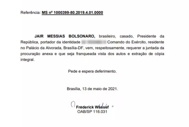 Além disso, o documento diz que esses poderes são concedidos “em especial no mandado de segurança 1000399802019410000, em tramitação no Tribunal regional Federal da 1ª Região”.