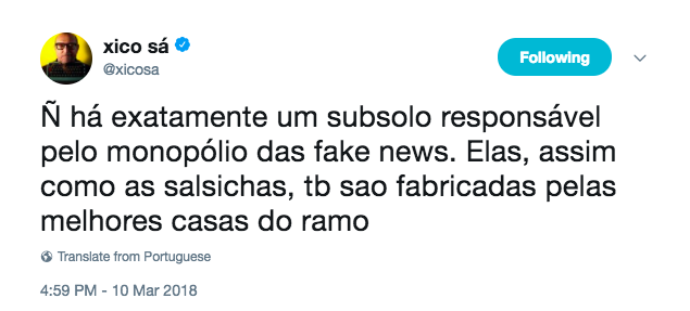 Xico Sá compara fake news a salsichas: fabricadas pelas melhores casas do ramo