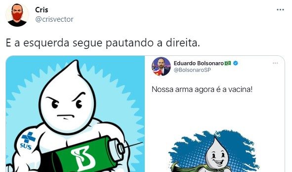 O ilustrador Cris (@crisvector) às redes sociais, nesta sexta-feira (12), comentar sobre a versão do Zé Gotinha proposta do pelo deputado federal Eduardo Bolsonaro (PSL-RJ).