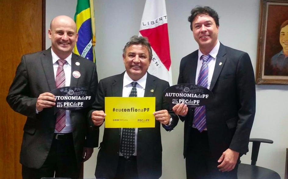 O senador Zezé Perrella, aquele cujo helicóptero foi capturado com 455 quilos de pasta base de cocaína, fez uma foto em apoio à autonomia da Polícia Federal.