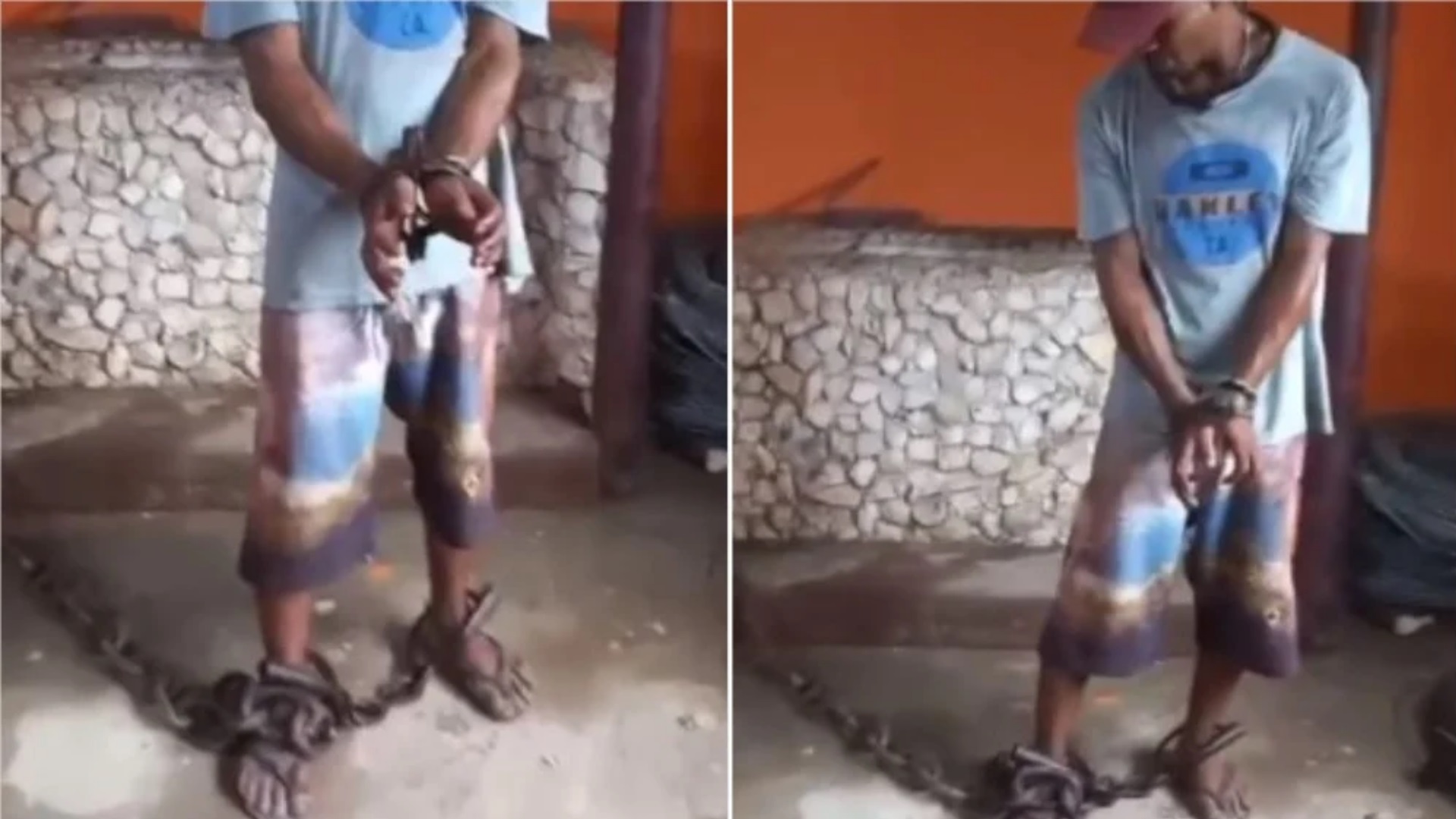 O homem acorrentado aparece em um segundo vídeo, no qual afirma que Márcio é “como um pai” e que o “ajuda em tudo”.