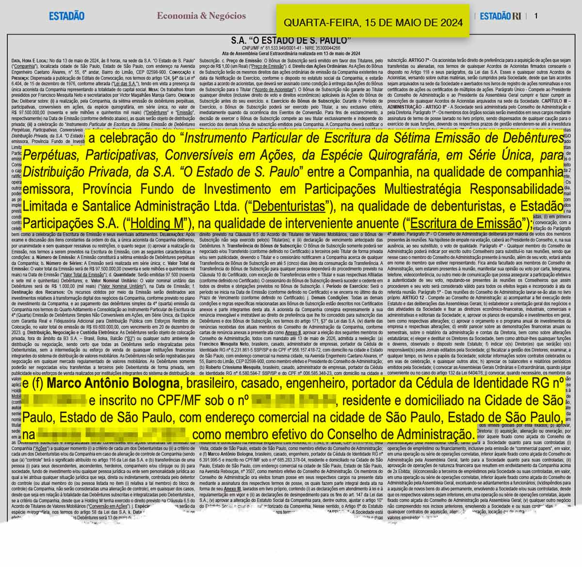 Além dos R$ 45 milhões captados com apoio da Trustee, o Estadão levantou outros R$ 97,5 milhões fora do mercado financeiro regulamentado. Segundo a ata da assembleia de 15 de maio, os recursos vieram da Santalice Administração Ltda., do grupo Cutrale, que aportou R$ 15 milhões, e do Província Fundo de Investimento em Participações Multiestratégia, que colocou R$ 82,5 milhões.