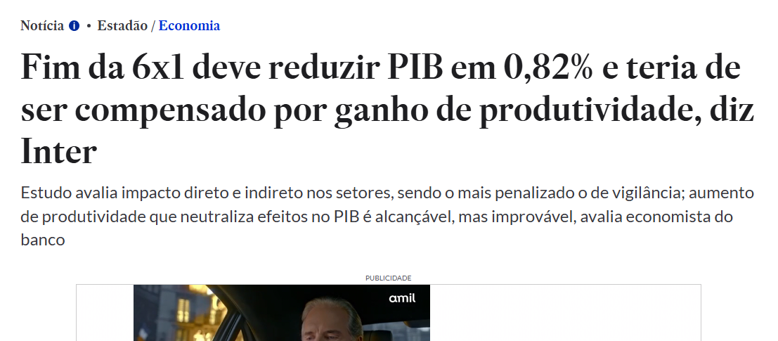 O Banco Inter e o Estadão também ignoram os exemplos mundo afora que contradizem a máxima de queda do PIB, uma clara forçada de barra no momento em que o Congresso começa a apreciar os projetos de redução de escala e jornada. Dão argumentos a uma ala parlamentar historicamente avessa aos direitos do trabalhador, que, sem coragem de assumir publicamente seu reacionarismo, usa subterfúgios legislativos para boicotá-los sem votar contra.