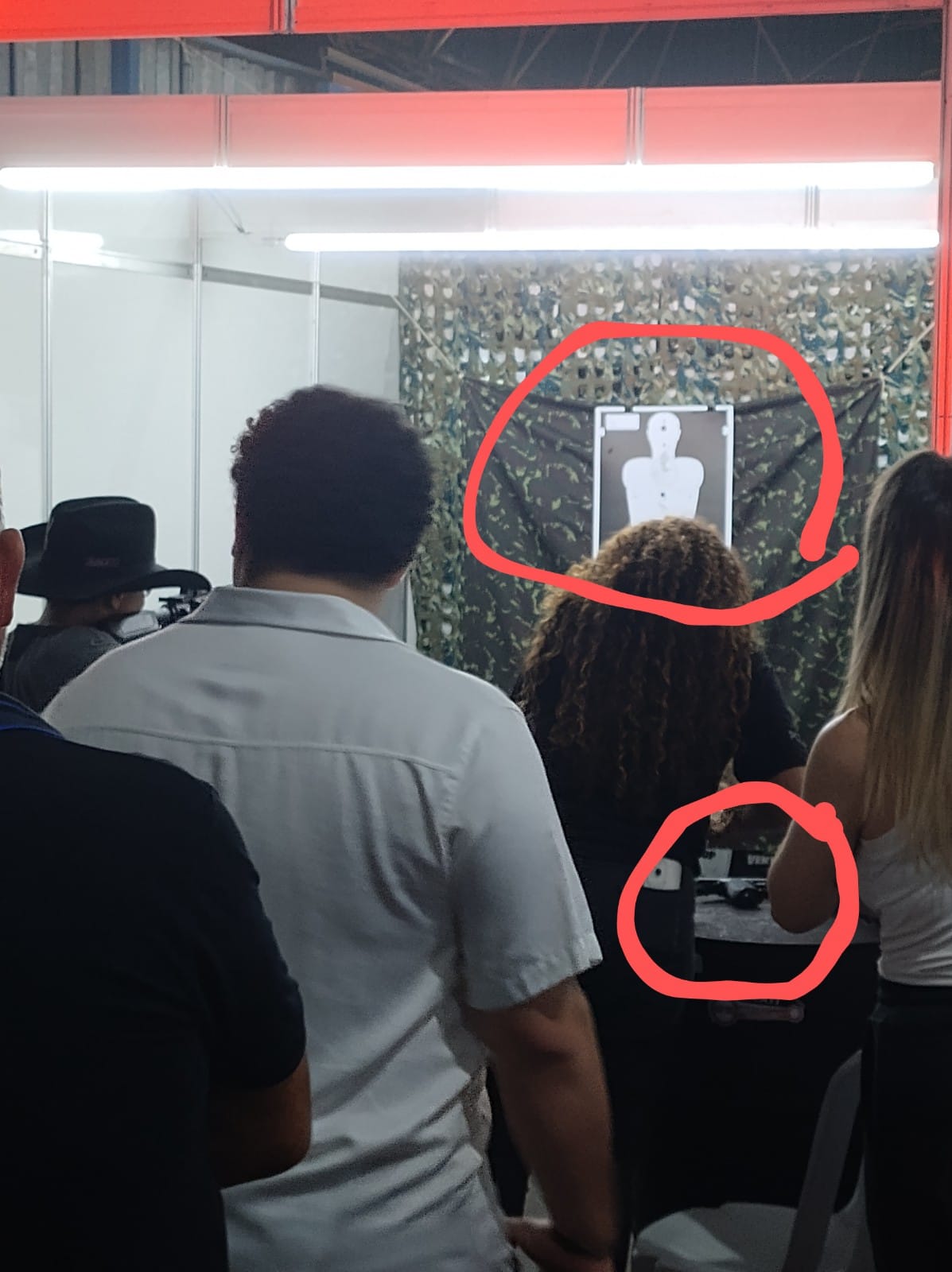 No final de semana, menores de idade disparavam contra um alvo imitando um corpo humano, orientados por policiais. A fila era enorme.