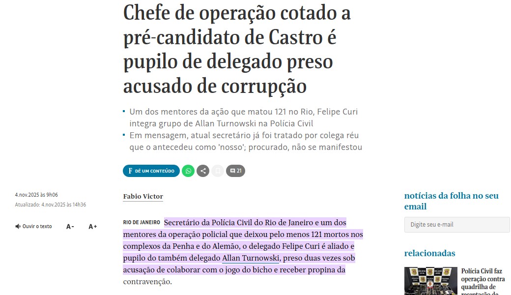Matéria da Folha de S.Paulo de Fabio Victor. Foto: Reprodução