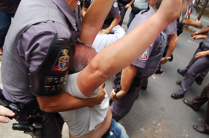 O professor José Roberto Guido revoltou-se com a forma truculenta e questionou o comando da polícia. Logo foi imobilizado pelos PMs. Os manifestantes tentaram intervir mas um agrupamento de policiais anvançou. Sobrou cacetada e agressões em todos que tentaram impedir sua detenção.