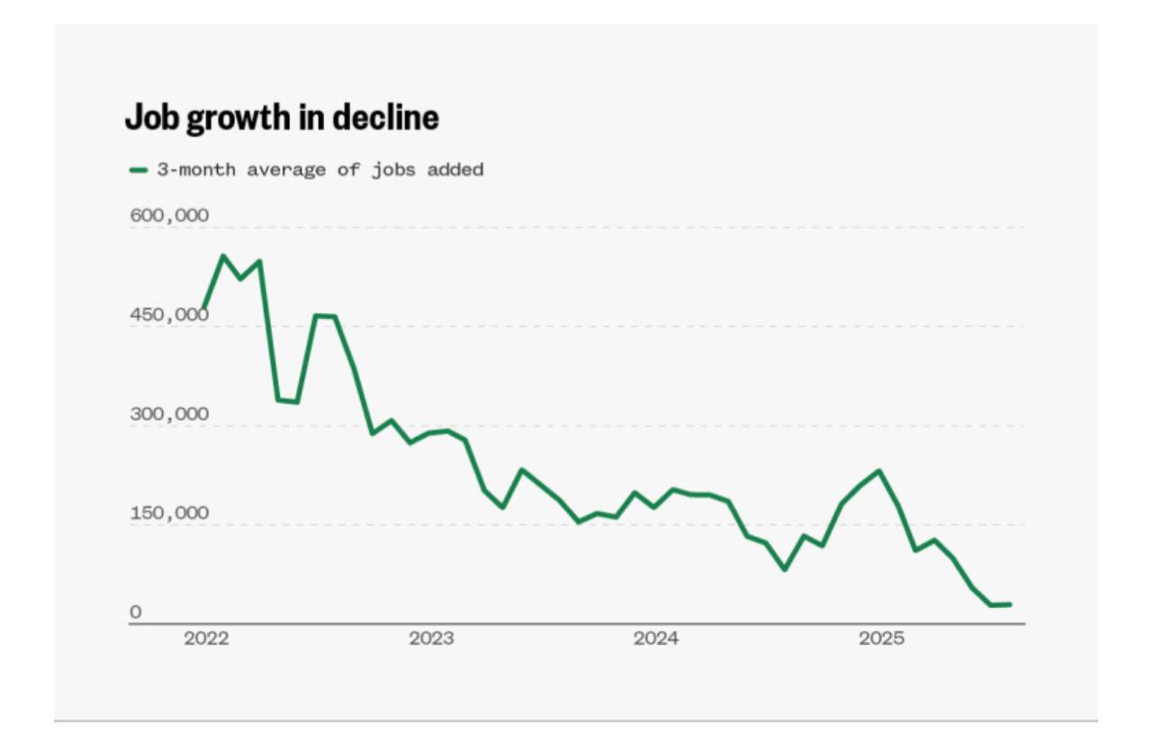 Economistas apontam que as políticas de Donald Trump empurraram a economia para um cenário de baixo crescimento e inflação persistente. As tarifas sobre importações e os cortes de gastos federais têm alimentado incertezas, dificultando contratações. Ao mesmo tempo, os índices de inflação continuam acima da meta de 2% do Banco Central americano (Federal Reserve, Fed).