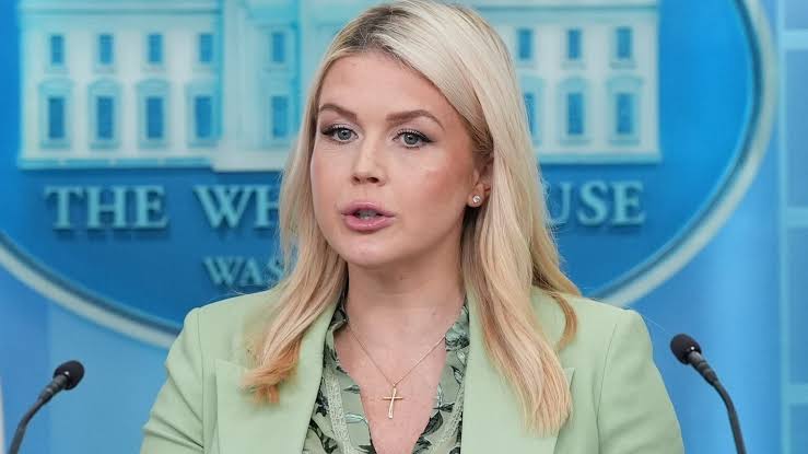 Karoline Leavitt, porta-voz do governo Trump, durante conferência de imprensa na Casa Branca. Reprodução