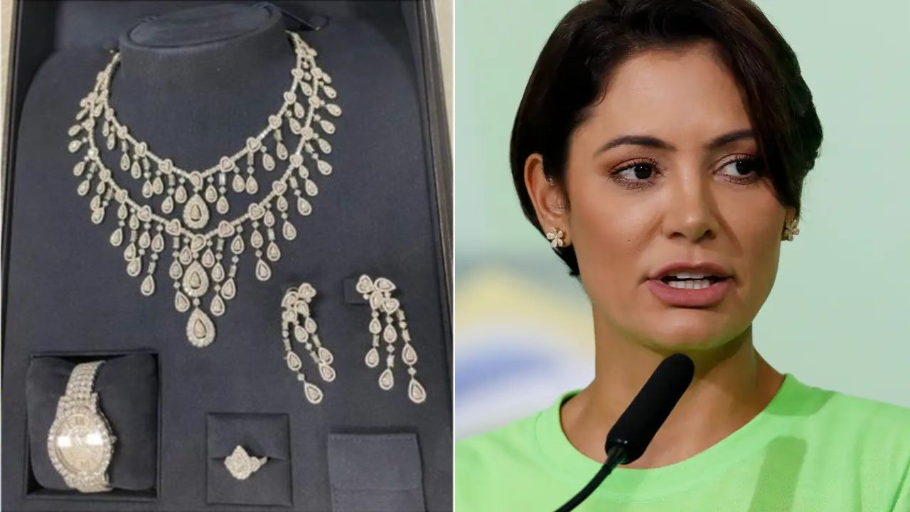 Joias sauditas e Michelle Bolsonaro. Foto: Reprodução