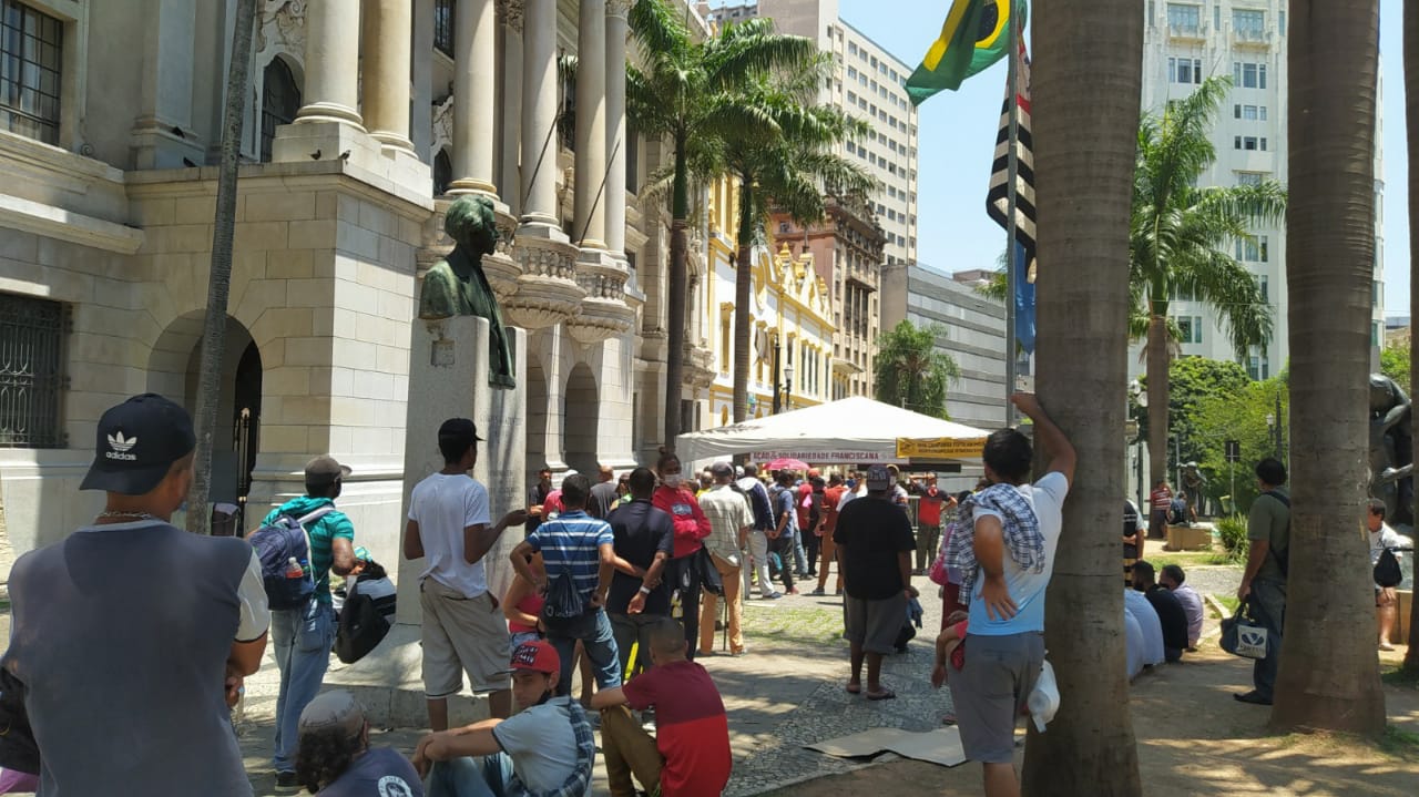 Pessoas na fila para receber refeições na Tenda Franciscana no Centro de SP – Foto: Reportagem