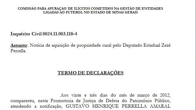 Mas um desdobramento dessa investigação criminal deu origem a um inquérito civil, em Minas Gerais, o de número 0024.11.003.118-4, que apura ilícitos cometidos na gestão de entidades ligadas ao futebol no Estado de Minas Gerais.