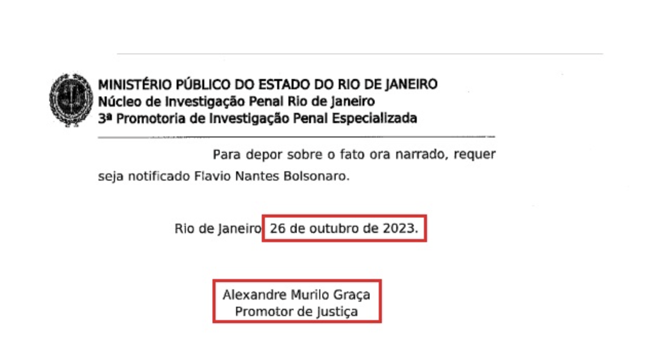 À época, a investigação conduzida por Murilo Graça se arrastava na 3ª Promotoria de Justiça de Investigação Penal Especializada. Desde maio do ano anterior, quando o juiz Marcello Rubioli, da 1ª Vara Criminal Especializada do Tribunal de Justiça do Rio, quebrou o sigilo de Carlos, o promotor só havia colhido dois depoimentos, nos quais um dos ouvidos arguiu o direito de permanecer em silêncio e o outro negou a acusação. Murilo Graça até hoje não apresentou qualquer denúncia contra Carlos Bolsonaro.