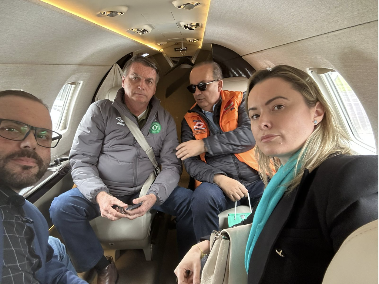 O Governador Jorginho Mello, usando a estrutura do Estado, levou o ex-presidente a sobrevoar áreas atingidas pelas enchentes. O ex-presidente prontamente se autopromoveu e utilizou do recurso publicitário pago com dinheiro público para postar em suas redes sociais, conferindo ampla publicidade à sua visita nada institucional às regiões catarinenses afetadas por enchentes e inundações.
