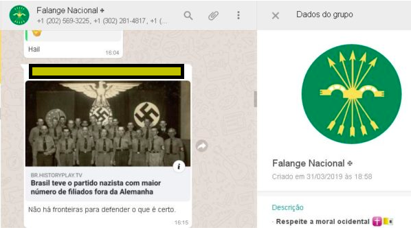 Entre os milhares de grupos de conversa de WhatsApp mantidos por simpatizantes e políticos de direita, em que se espalham notícias falsas e mensagens de ódio desde antes das Eleições de 2018, um novo perfil de fórum de debates tem surgido, de cunho ainda mais radical, assumidamente defensor de teorias e políticas nazi-fascistas.