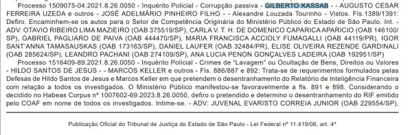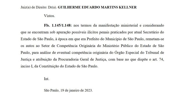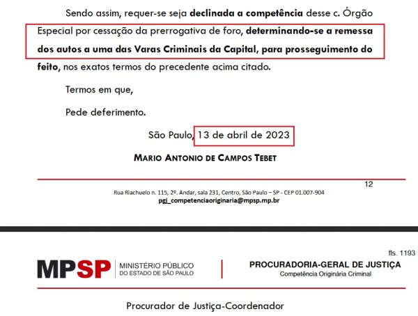 A última movimentação processual acerca do caso foi publicada no Diário Oficial da Justiça de São Paulo no dia 30 de setembro do ano passado, encaminhando os autos para “o Setor de Competência Originária do MP-SP”, como se vê abaixo.
