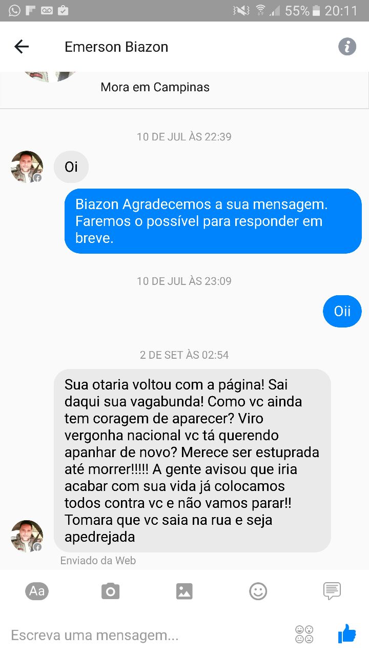 A nova prova de que a estudante está sendo silenciada é um print em que o assessor Emerson Biazon a ameaça e diz que ela “merece ser estuprada até a morte”. O print foi descoberto pela polícia em perícia ao computador e celular de Patrícia Lélis.