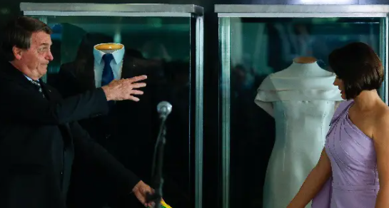 Em meio a uma perplexidade do país com o “vacina ou não vacina”, Jair Bolsonaro participava, sorridente até as orelhas, da abertura de uma importantíssima exposição: a do paletó que usou na sua posse, no início do ano passado, ladeado pelo vestido com que Michelle o acompanhava.
