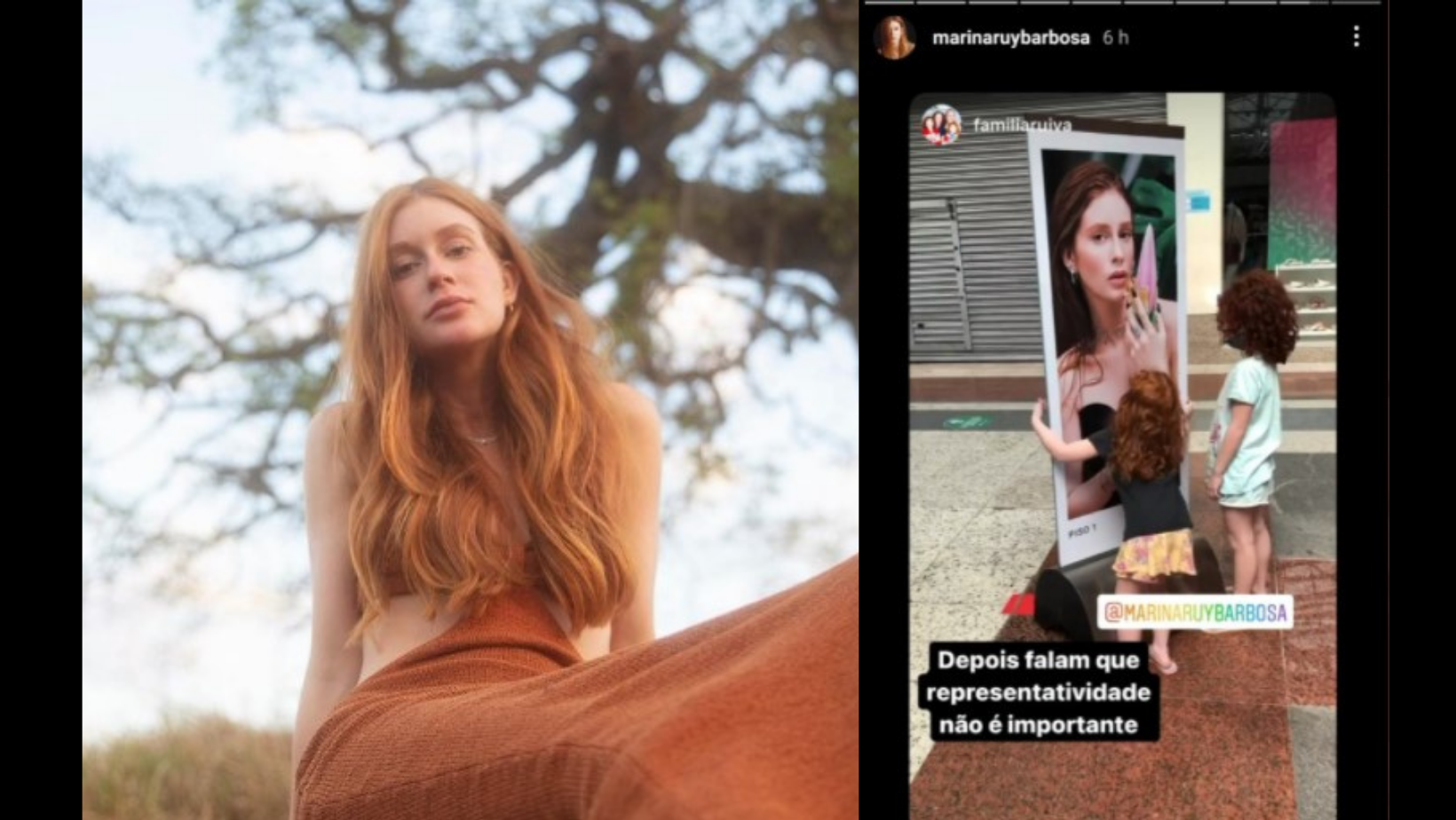Parece ter sido o caso de Marina Ruy Barbosa – ruiva, rica e global – que compartilhou uma publicação no Instagram em que uma criança ruiva olhava devotada para a foto da atriz em um anúncio publicitário (de gente rica e global).